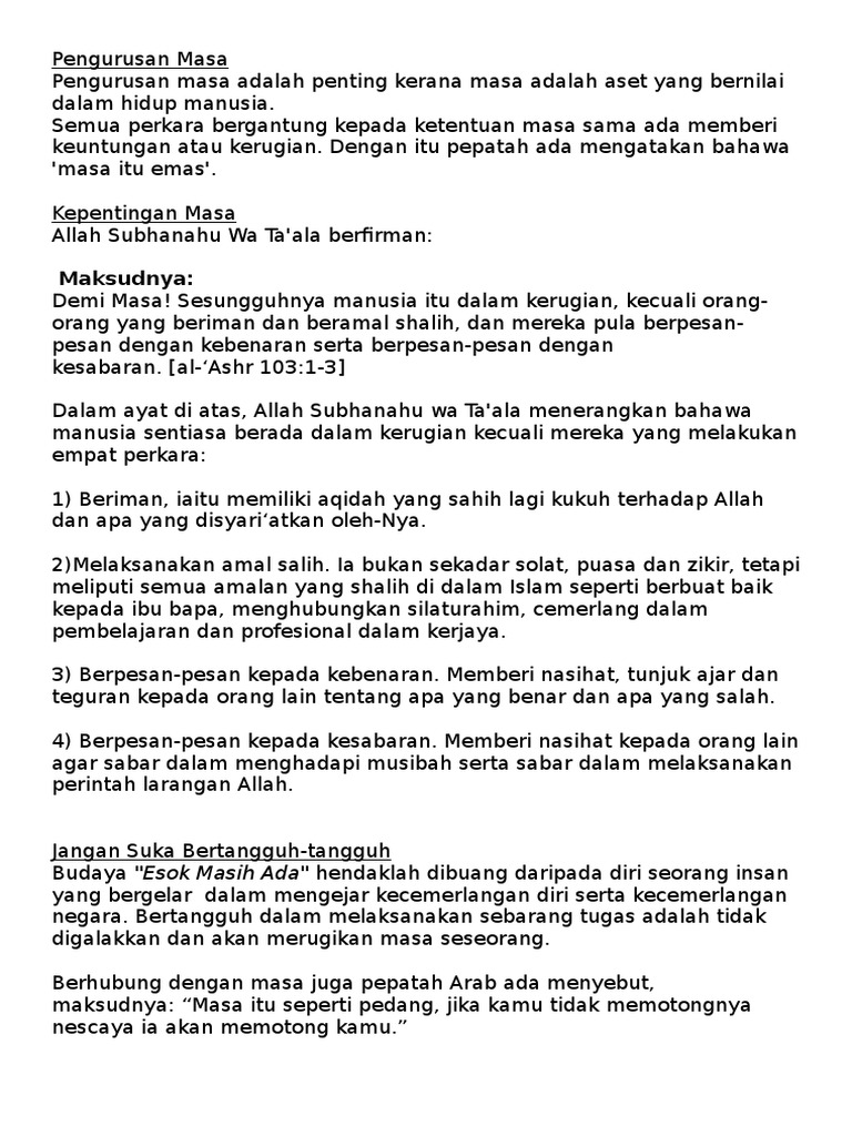Tazkirah Ringkas Tentang Masa